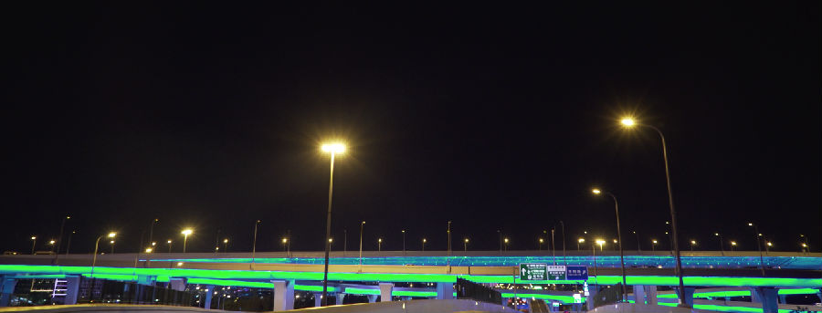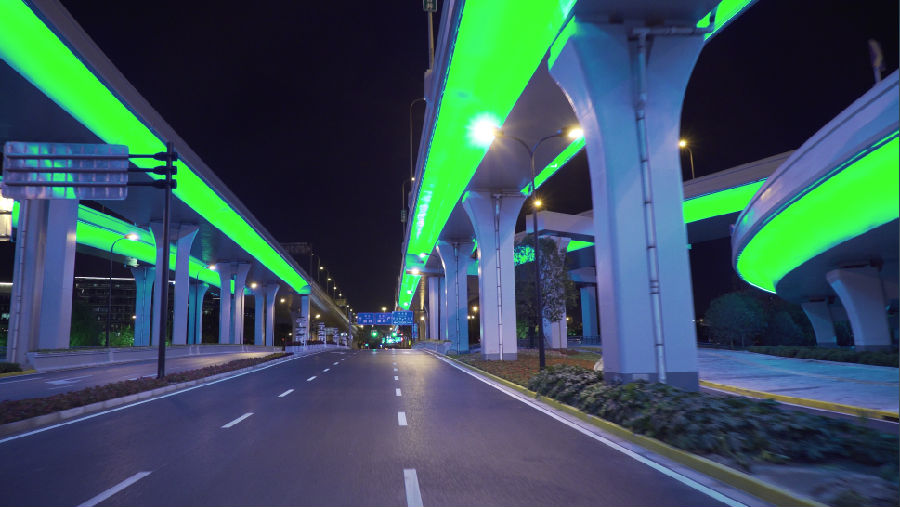 作為高架(jia)(jia)的“美容師”,作品現在(zai)已經(jing)可以“嶄(zhan)露頭角”了。白天(tian)走(zou)在(zai)路上,“高架(jia)(jia)灰(hui)”讓整座城(cheng)市顯得更有質感;夜(ye)幕降臨,彩色的燈(deng)光鑲嵌在(zai)高架(jia)(jia)橋兩邊,汽車風(feng)馳電掣,仿佛穿越夢幻空間。