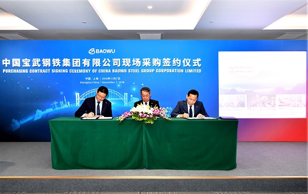 11月7日,首(shou)屆(jie)中(zhong)(zhong)國(guo)(guo)國(guo)(guo)際(ji)進口博(bo)覽會進入第3天(tian)。上午,位于國(guo)(guo)家會展中(zhong)(zhong)心(上海)的(de)M302會議室內人頭攢動(dong)、熱鬧非(fei)凡,中(zhong)(zhong)國(guo)(guo)寶武現場采(cai)購簽約儀式(shi)在這(zhe)里舉行。一項項合同的(de)簽訂、一筆(bi)筆(bi)交易的(de)達成,彰顯了(le)中(zhong)(zhong)國(guo)(guo)寶武擴大開放的(de)決心和(he)取得的(de)成果。中(zhong)(zhong)國(guo)(guo)寶武總經理(li)、黨(dang)委副書記胡望明等(deng)中(zhong)(zhong)國(guo)(guo)寶武方面有關負責人,與外方企業代(dai)表、各界媒體(ti)等(deng)百(bai)余人共同見(jian)證了(le)這(zhe)一歷史時刻。