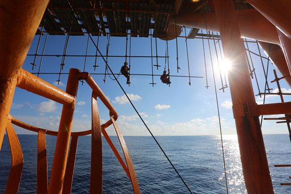 2018年10月24日,中國海油崖城13-1氣田13-2項目海管接入工作正如火如荼的開展,面對工期緊、風險高、強度大因素,平臺架子工勇當先鋒,憑借高超技能迅速建立工作平臺,保障后續工作順利進行。