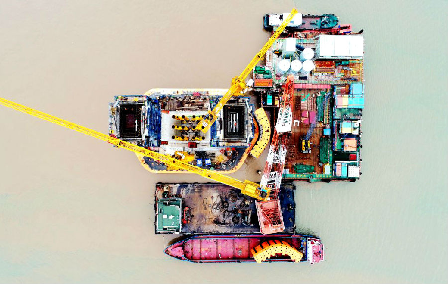近日,在舟岱跨海大橋(qiao)(qiao)主通航(hang)孔橋(qiao)(qiao)ZT3#主墩施工平臺現(xian)場(chang),國內首個內外(wai)雙層防撞鋼(gang)套箱(xiang)外(wai)層首塊鋼(gang)套箱(xiang)安(an)裝(zhuang)完成,拉開了(le)該(gai)橋(qiao)(qiao)梁外(wai)層防撞鋼(gang)套箱(xiang)安(an)裝(zhuang)工作序幕。