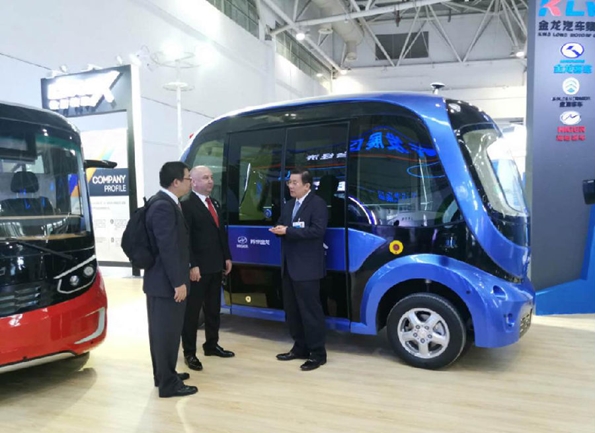 2019年5月6日,第二屆數字(zi)中國建設峰(feng)會(hui)在福州(zhou)開幕,福汽(qi)集團攜旗下金龍(long)汽(qi)車(che)(che)三款L4級自(zi)動駕(jia)駛產(chan)品(pin)金龍(long)“阿波龍(long)”、金旅“星辰”和(he)海格“深藍”閃(shan)亮登場,展現了在數字(zi)技術創新領域的重(zhong)大成果。塞(sai)爾維亞(ya)創新和(he)科技發展部(bu)部(bu)長(chang)Nenad Popovi?一行(xing)在結束第二屆“一帶(dai)一路”峰(feng)會(hui)行(xing)程后,來到福州(zhou)參(can)觀(guan)金龍(long)汽(qi)車(che)(che)展區。