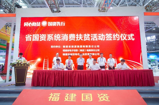 第十七(qi)屆中國(guo)(guo)(guo)?海峽項目(mu)創新成(cheng)果交(jiao)易會期(qi)間(jian),福建省(sheng)國(guo)(guo)(guo)資(zi)(zi)委(wei)于6月19日召開(kai)了“省(sheng)國(guo)(guo)(guo)資(zi)(zi)系統‘同心助(zhu)貧(pin),國(guo)(guo)(guo)資(zi)(zi)先行’消(xiao)費扶貧(pin)活動(dong)啟動(dong)儀(yi)式暨產品服(fu)務推介會”。17家福建省(sheng)國(guo)(guo)(guo)資(zi)(zi)委(wei)所出資(zi)(zi)業及部分(fen)重(zhong)要子(zi)企業、福建省(sheng)國(guo)(guo)(guo)資(zi)(zi)系統掛鉤幫扶的9個省(sheng)級扶貧(pin)開(kai)發重(zhong)點縣(xian)共100多人參加活動(dong)。