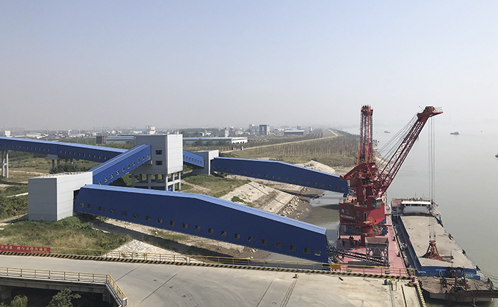 李(li)埠(bu)港砂(sha)石集(ji)并(bing)中心位于(yu)李(li)埠(bu)港區(qu)一(yi)期(qi)綜(zong)合碼頭(tou)5、6#泊位,由湖北(bei)交(jiao)投荊州投資(zi)公司投資(zi)建(jian)設(she)(she)(she),工程(cheng)占地面(mian)積約120畝,總投資(zi)約2.5億元,設(she)(she)(she)計(ji)散(san)貨(huo)泊位2個,年設(she)(she)(she)計(ji)吞吐量360萬噸。集(ji)并(bing)中心于(yu)2017年10月開(kai)建(jian),建(jian)設(she)(she)(she)過程(cheng)嚴把標準,嚴格(ge)(ge)程(cheng)序,采取(qu)嚴格(ge)(ge)環保措施,采用全密封(feng)式(shi)結構建(jian)設(she)(she)(she),實(shi)現了從船靠岸(an)到(dao)砂(sha)石運(yun)走,砂(sha)石全程(cheng)不著地、堤(di)外不見砂(sha)。