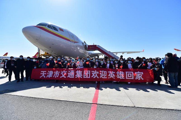 3月17日下午(wu),交(jiao)通集(ji)團(tuan)疫情(qing)應急車隊(dui)26部大(da)巴(ba)車于14時提前在天津濱海(hai)國際機場停機坪迎候赴鄂回(hui)津醫療隊(dui),每輛(liang)大(da)巴(ba)貼上(shang)歡迎橫幅(fu),致(zhi)敬英(ying)雄回(hui)歸。