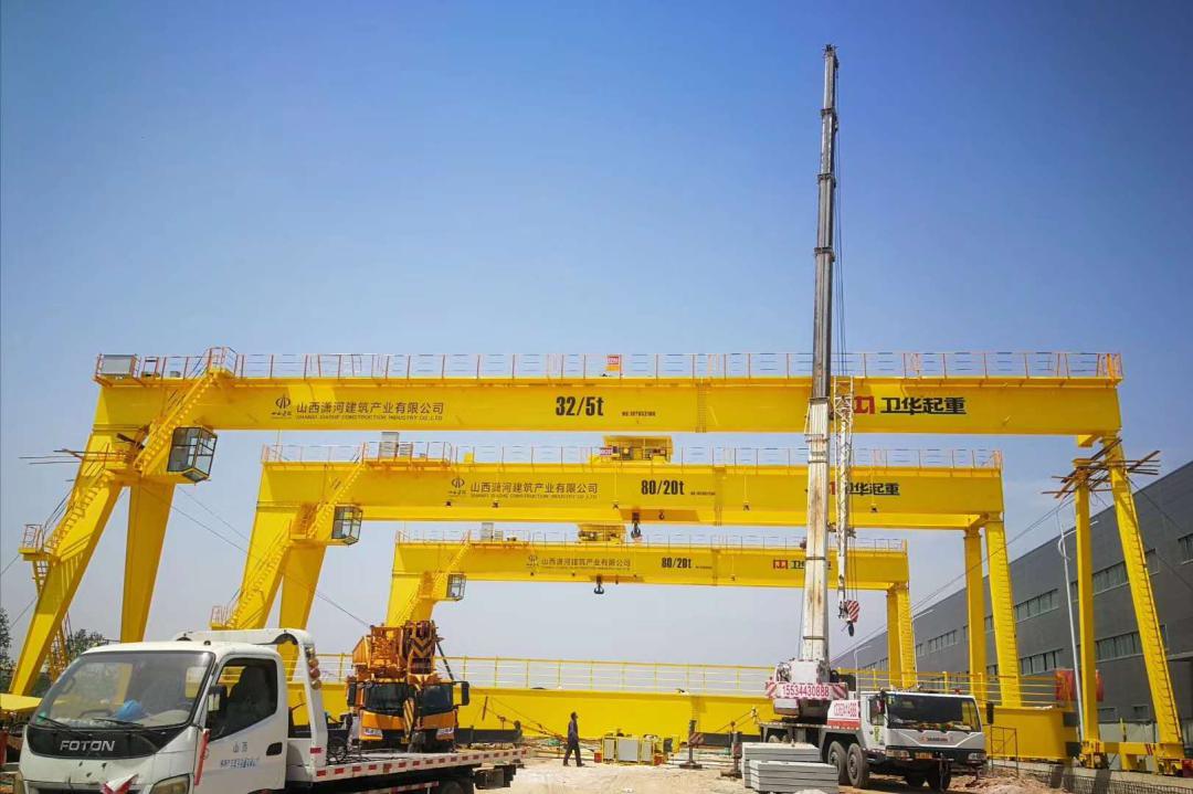 橋梁拼裝區42米跨度的門式起重機拔地而起,可吊運160噸的鋼梁段