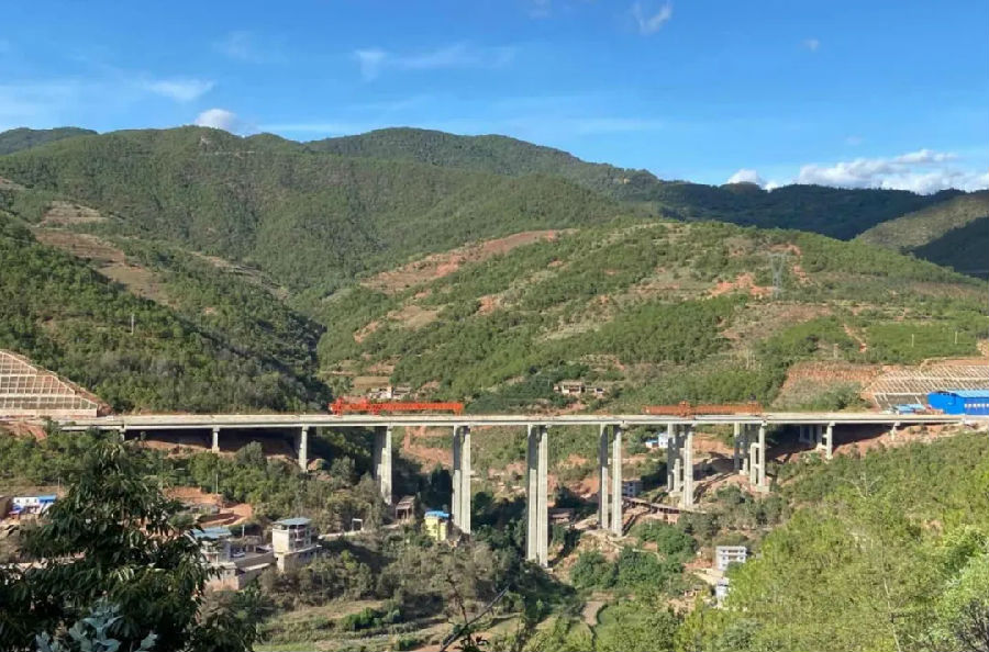 6月22日,楚姚高速公路第二合(he)同段丫(ya)拉大(da)橋左幅順利貫通(tong)。