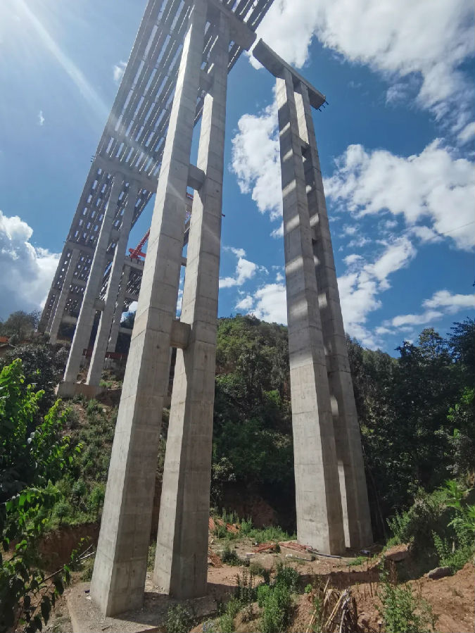 丫拉(la)大橋(qiao)左幅6號橋(qiao)墩(dun)(dun),墩(dun)(dun)高(gao)(gao)70.01米(mi)(mi),是楚(chu)姚高(gao)(gao)速全(quan)線最高(gao)(gao)墩(dun)(dun)。丫拉(la)大橋(qiao)全(quan)橋(qiao)左幅12×40米(mi)(mi),右(you)幅10×40米(mi)(mi)。橋(qiao)梁起終點樁(zhuang)號K51+929~K52+415,全(quan)長486米(mi)(mi)。上部結(jie)構(gou)采(cai)用(yong)預(yu)應力砼(tong)(后(hou)張)T梁,先簡(jian)支后(hou)連(lian)續;下部結(jie)構(gou)采(cai)用(yong)方(fang)形柱(zhu)式(shi)墩(dun)(dun),其中(zhong)40米(mi)(mi)以上高(gao)(gao)墩(dun)(dun)14個,雙柱(zhu)式(shi)薄壁實心墩(dun)(dun),蓋梁均為(wei)二次(ci)后(hou)張法(fa)預(yu)應力施工(gong)。