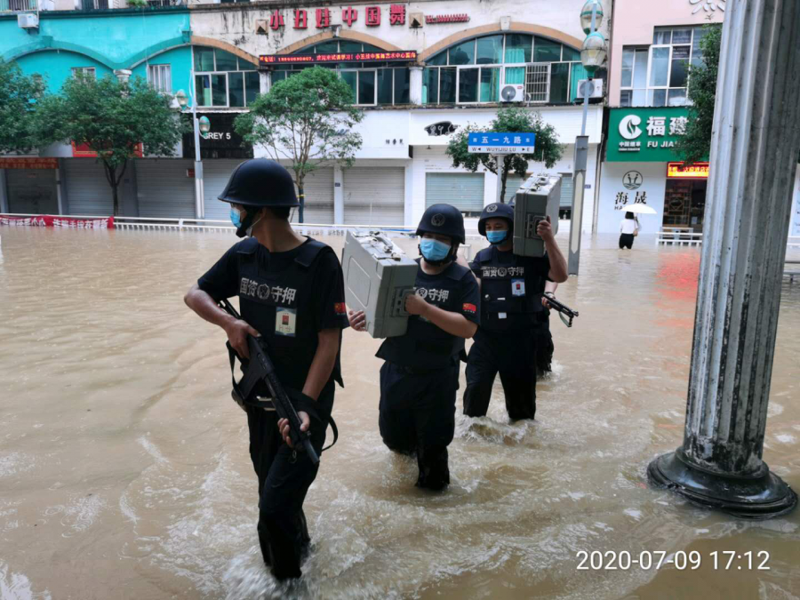 由于(yu)對(dui)重要物資轉(zhuan)移(yi)及時,此(ci)次險情(qing)未(wei)造成(cheng)較大(da)的經濟(ji)損(sun)失。在面對(dui)洪(hong)水險情(qing)時,國資守押公司邵武押運大(da)隊隊員們克(ke)服極端天氣帶(dai)來的不(bu)良影響,勇于(yu)擔(dan)當,充分發(fa)揚了“能(neng)吃苦、能(neng)戰(zhan)斗、能(neng)奉獻”的精神。