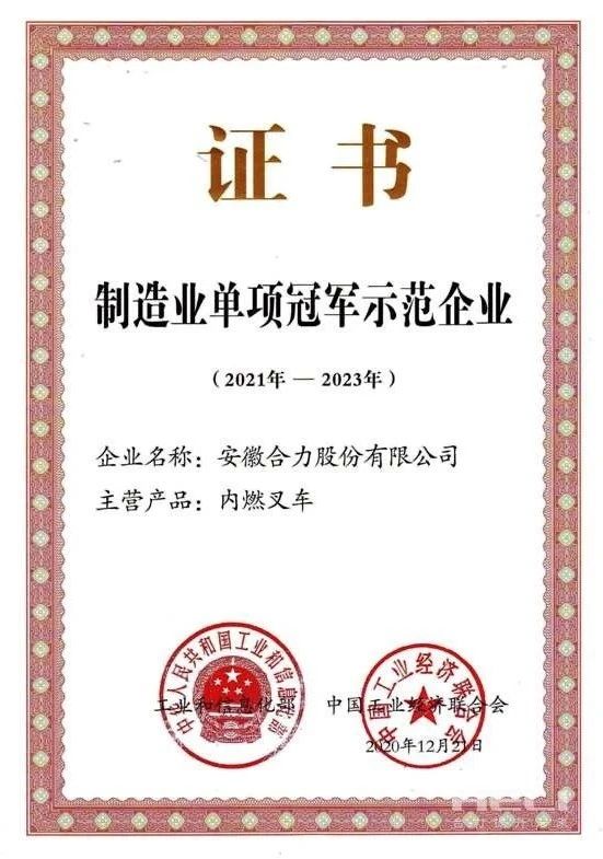 日(ri)前,工(gong)(gong)業(ye)(ye)和信息(xi)化部、中國工(gong)(gong)業(ye)(ye)經(jing)濟(ji)聯合(he)會聯合(he)公(gong)(gong)布第五批制(zhi)造業(ye)(ye)單(dan)項(xiang)冠軍及通過復核的(de)(de)第二批制(zhi)造業(ye)(ye)單(dan)項(xiang)冠軍企業(ye)(ye)名單(dan),作為中國工(gong)(gong)業(ye)(ye)車(che)輛(liang)行業(ye)(ye)領軍企業(ye)(ye),安(an)徽(hui)(hui)合(he)力(li)股份有限公(gong)(gong)司(以下簡稱“安(an)徽(hui)(hui)合(he)力(li)”)憑借對工(gong)(gong)業(ye)(ye)車(che)輛(liang)核心產品的(de)(de)長期堅守(shou)、持續(xu)的(de)(de)創新能(neng)力(li)和卓越的(de)(de)市場影響力(li),成功入選(xuan)“國家制(zhi)造業(ye)(ye)單(dan)項(xiang)冠軍示范企業(ye)(ye)”名單(dan)。
