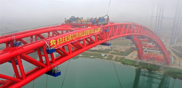 北部灣投資集團建設的世界最大跨徑公路鋼管混凝土提籃拱橋沙尾左江特大橋順利主弦管管內混凝土灌注