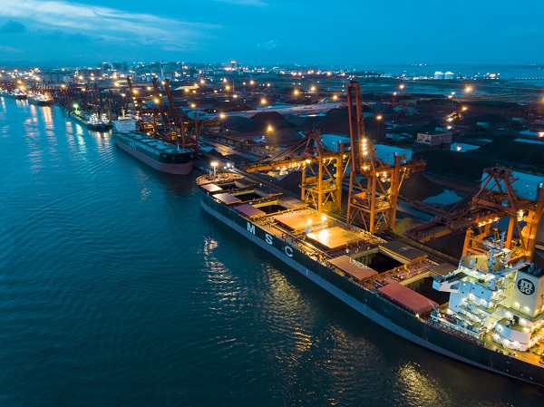 夜間忙碌的北部灣港防城港港區碼頭作業現場