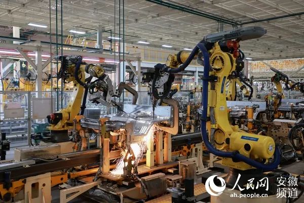江汽集團生產線。圖為機器人正在進行焊接。(人民網 王曉飛攝)