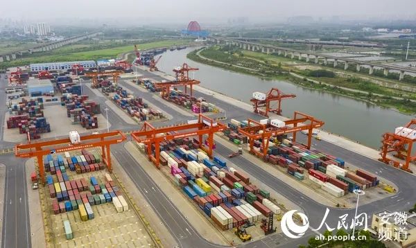 安徽省港航集團旗下的合肥港國際集裝箱碼頭。(人民網 張俊攝)