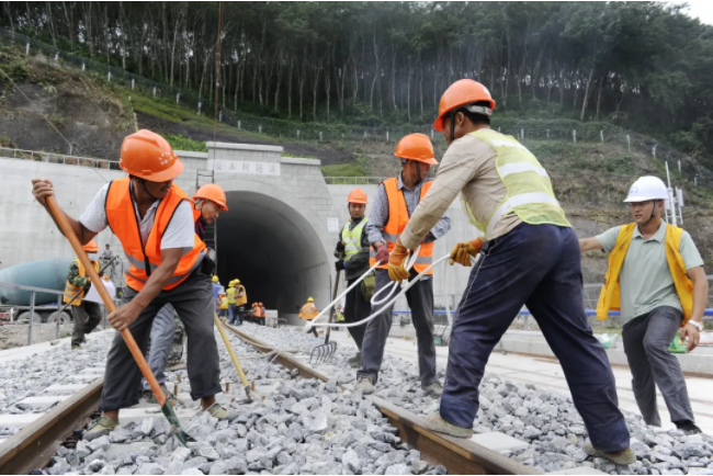 2020年4月中老鐵路國內玉溪至(zhi)磨憨(han)段開始鋪(pu)軌(gui)(gui),由(you)于橋梁、隧道等控制(zhi)性工(gong)程(cheng)建設制(zhi)約,鋪(pu)軌(gui)(gui)施工(gong)受(shou)到一定影響。為安全(quan)(quan)優質完成鋪(pu)軌(gui)(gui)任務,施工(gong)人(ren)員24小時四班倒,操(cao)縱兩臺鋪(pu)軌(gui)(gui)機同時在上下(xia)行(xing)線路上鋪(pu)軌(gui)(gui),做到人(ren)停(ting)機不停(ting),今年2月再次增加磨憨(han)至(zhi)玉溪方向(xiang)反(fan)向(xiang)人(ren)工(gong)鋪(pu)軌(gui)(gui)作業,全(quan)(quan)力推(tui)進(jin)全(quan)(quan)線鋪(pu)軌(gui)(gui)完成。