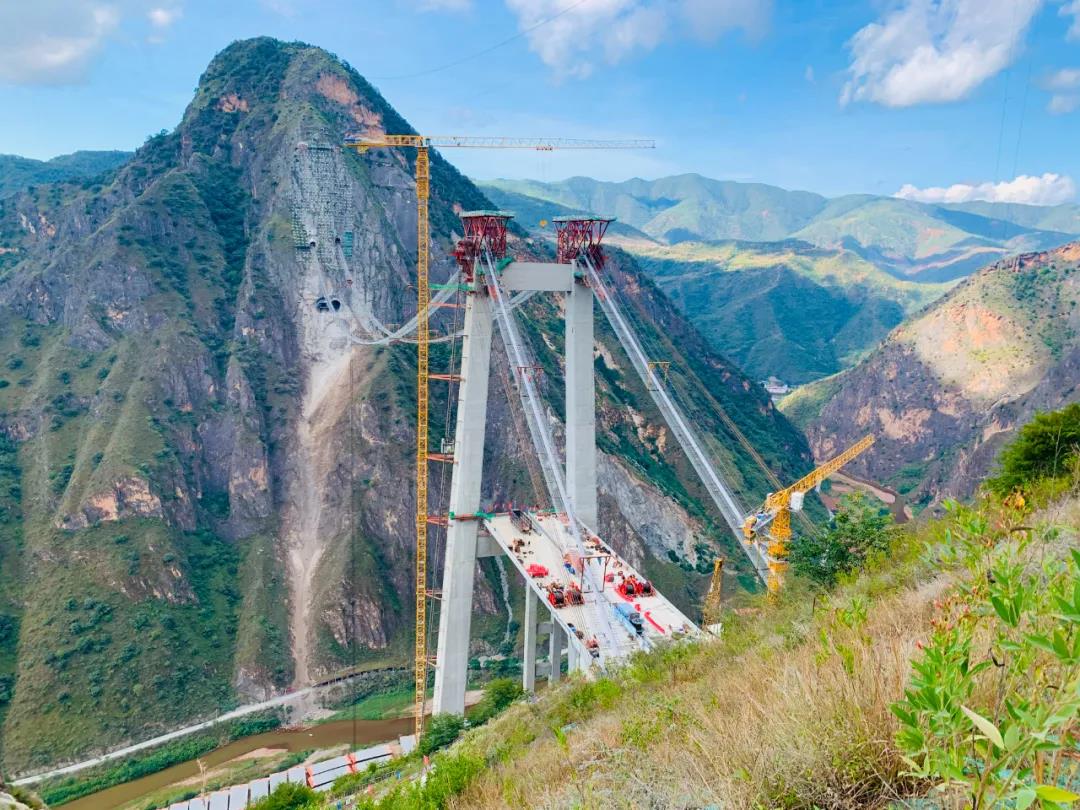 11月20日11時(shi)58分,玉楚高速綠汁(zhi)江特大(da)橋(qiao)首片(pian)鋼(gang)箱梁架設成功。大(da)橋(qiao)建設成后,將創造首座單塔單跨鋼(gang)箱梁懸索橋(qiao),最大(da)跨度(du)的單塔單跨懸索橋(qiao)(主跨780米)、最大(da)傾角隧(sui)道錨(54度(du))三(san)項世界紀錄。