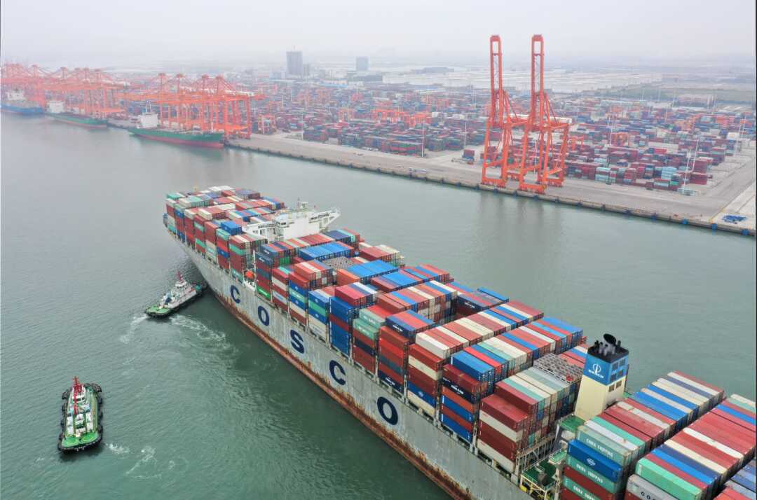 北部灣港20萬噸大型集裝箱貨輪正在靠泊