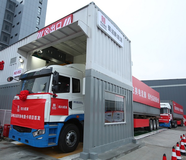 成(cheng)(cheng)渝(yu)電(dian)走廊充(chong)換(huan)電(dian)重(zhong)卡項目在成(cheng)(cheng)都龍泉(quan)(quan)民生(sheng)物流(liu)園、成(cheng)(cheng)渝(yu)高速資中停車(che)(che)區等4處建設(she)6座充(chong)換(huan)電(dian)站(zhan),能有效解決新能源重(zhong)型卡車(che)(che)補能效率低(di)、補能時(shi)(shi)間長、補能設(she)施匱乏(fa)等痛點(dian),節約(yue)物流(liu)成(cheng)(cheng)本30%,是全國第一(yi)條(tiao)高速公(gong)路(lu)(lu)新能源重(zhong)卡充(chong)換(huan)電(dian)一(yi)體化走廊、第一(yi)個由高速公(gong)路(lu)(lu)公(gong)司主(zhu)導的電(dian)池銀行項目,也是助推成(cheng)(cheng)渝(yu)地區雙(shuang)城經濟圈(quan)建設(she)的第一(yi)個綠(lv)色能源集卡項目。目前,資中停車(che)(che)區和龍泉(quan)(quan)民生(sheng)物流(liu)園充(chong)換(huan)電(dian)站(zhan)已建成(cheng)(cheng)開通,適配于(yu)(yu)大部分新能源重(zhong)卡車(che)(che)型,換(huan)電(dian)過程僅需3-5分鐘(zhong),自(zi)動換(huan)電(dian)成(cheng)(cheng)功率達(da)99%,24小時(shi)(shi)內最高可換(huan)電(dian)次數達(da)168次。項目第二階段計劃于(yu)(yu)2023年(nian)第二季(ji)度末建成(cheng)(cheng)重(zhong)慶(qing)永川服務區、重(zhong)慶(qing)果園港(gang)充(chong)換(huan)電(dian)站(zhan),全線(xian)打通全國首條(tiao)高速公(gong)路(lu)(lu)電(dian)走廊。