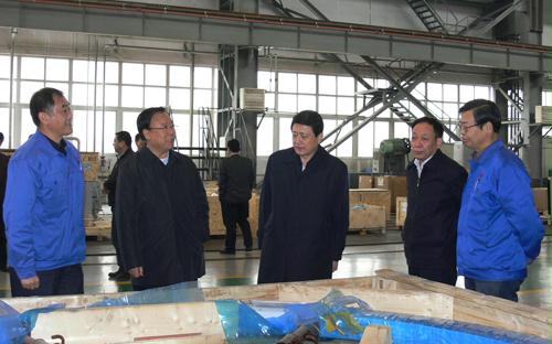 陸浩(hao)、劉偉平一行深入車間考察風(feng)電裝備廠房及主件