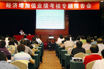 國務院國資委綜合局副局長劉南昌在會上作了題為《價值管理與經濟增加值考核體系》的專題講座。講座包括四個部分:一是介紹價值管理的基本內涵,提出企業價值管理的終極目標是股東利益最大化。二是經濟增加值考核體系介紹,重點講解經濟增加值的含義、核心理念和計算方法等。三、從國際經驗看實施EVA管理的成功因素,通過對國外公司應用EVA管理體系的成功案例剖析,提出實施經濟增加值考核對優化和改進企業管理效率,協助企業制定資源配置和業務組合戰略,設計價值提升策略具有重要意義。四是介紹了經濟增加值考核在中央企業的應用,包括試點情況、基本原則、指標設計,調整因素、目標值確定、激勵方案等。國務院國資委在2007年、2008年、2009年分別有87戶、93戶、100戶中央企業參與了經濟增加值考核試點。從2010年開始,國務院國資委將在中央企業全面實行EVA考核。