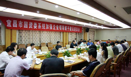 9月16日下午,宜昌市國資系統加強國有企業領導班子建設座談會在桃花嶺飯店召開。參加會議的有各出資監管企業董事長、黨委書記和黨辦主任近50人。安琪集團、宜化集團、夷陵國資公司、城投公司、夷陵長江大橋公司、宜港集團、物資總公司等企業在會上介紹交流了加強企業領導班子建設的作法和經驗。市國資委黨委委員、副主任李大權主持會議,市委組織部副調研員、經濟干部科科長黎孔榮,市國資委黨委書記、主任習斌分別在座談會上講話。