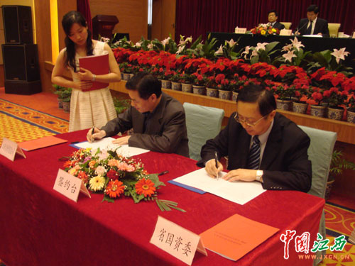 江西省國資委黨委書記、主任李天鷗與省國資出資監管單位簽定2008年度經營業績責任書。
