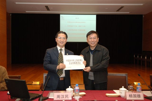 會上,世博局(ju)向(xiang)市(shi)國(guo)資委發(fa)出了參加2010年世博會的邀(yao)請函(han),市(shi)國(guo)資委向(xiang)國(guo)盛集團(tuan)發(fa)出了承建(jian)“上海企(qi)業聯合館”任務(wu)書,國(guo)盛集團(tuan)董事(shi)長施德容(rong)代表參建(jian)企(qi)業發(fa)言。
