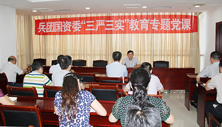在扎實完成“三嚴三實”第一專題黨課及專題研討后,經過認真籌備,近日,新疆生產建設兵團國資委黨委副書記、紀委書記張曉憑圍繞“嚴以律己”這一專題,給兵團國資(zi)委機關全體人員上了一堂(tang)生動(dong)的(de)黨課。