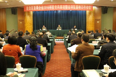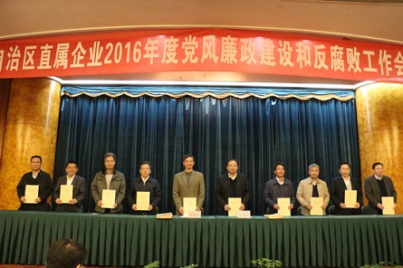 2016年(nian)2月(yue)19日(ri),廣西國(guo)資(zi)委(wei)在南寧召開自治(zhi)區(qu)直屬企業(ye)(ye)2016年(nian)度黨風廉政(zheng)建設和反腐敗工作會(hui)(hui)議(yi),傳達學習十(shi)八屆中央紀(ji)(ji)委(wei)六次(ci)全(quan)會(hui)(hui)和自治(zhi)區(qu)紀(ji)(ji)委(wei)十(shi)屆七次(ci)全(quan)會(hui)(hui)精神(shen),總結2015年(nian)黨風廉政(zheng)建設工作,部署2016年(nian)工作任務。自治(zhi)區(qu)國(guo)資(zi)委(wei)領導、自治(zhi)區(qu)國(guo)有企業(ye)(ye)監(jian)事會(hui)(hui)主(zhu)席、國(guo)資(zi)委(wei)各(ge)處(chu)室負責(ze)(ze)人(ren),區(qu)直企業(ye)(ye)黨組(zu)織(zhi)書記(ji)、紀(ji)(ji)委(wei)書記(ji)、紀(ji)(ji)檢監(jian)察部門(men)負責(ze)(ze)人(ren)參加會(hui)(hui)議(yi)。