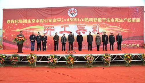 2月25日上午,在歡慶的鑼鼓聲中,陜西生態水泥股份有限公司富平2×4500t/d熟料新型干法水泥生產線項目在富平薛鎮底店下莊村隆重舉行。陜西省發改委原副主任曹云龍、富平縣人大主任趙升良、縣委常委副縣長白惠敏、渭南市安監局局長姬智武和生態水泥公司黨委書記、董事長王興志等有關領導出席了開工典禮。生態水泥公司領導和機關相關部門、施工單位、監理公司以及富平縣各職能部門的負責同志參加了慶典儀式。富平縣人大副主任、縣委辦公室主任王全峰主持了慶典儀式。