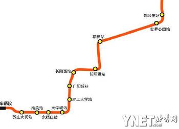 房(fang)山線(xian)起始站為(wei)(wei)蘇莊大街(jie)站,終(zhong)點(dian)站至(zhi)郭(guo)(guo)公(gong)(gong)莊站。線(xian)路(lu)(lu)在(zai)房(fang)山區(qu)內均為(wei)(wei)高架(jia)線(xian)路(lu)(lu),從蘇莊大街(jie)站出(chu)發,沿(yan)著長虹(hong)路(lu)(lu)向(xiang)東,在(zai)長于路(lu)(lu)處(chu)轉向(xiang)北(bei)、其后轉向(xiang)東沿(yan)著京良路(lu)(lu)至(zhi)長周路(lu)(lu)處(chu)繼續向(xiang)北(bei);其后順著獨義三路(lu)(lu)向(xiang)東北(bei)方向(xiang)延伸直至(zhi)跨過(guo)永定河進入豐臺區(qu)界(jie)(jie)內,然后順著葆(bao)臺路(lu)(lu),高架(jia)段經過(guo)0.55公(gong)(gong)里的過(guo)渡段后慢(man)慢(man)“鉆(zhan)入”地下,抵(di)達世(shi)(shi)界(jie)(jie)公(gong)(gong)園南門,最終(zhong)在(zai)郭(guo)(guo)公(gong)(gong)莊站結(jie)束,并將與正在(zai)建設(she)的地鐵(tie)9號(hao)線(xian)在(zai)該站實現換乘。其中(zhong),郭(guo)(guo)公(gong)(gong)莊站在(zai)施工過(guo)程中(zhong)劃(hua)分于9號(hao)線(xian)內,因此(ci)今年年底試通車的部分可能(neng)并不涵蓋郭(guo)(guo)公(gong)(gong)莊站,而是從世(shi)(shi)界(jie)(jie)公(gong)(gong)園站至(zhi)蘇莊大街(jie)站先開通。
