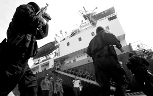 6月10日(ri)下(xia)午3時整(zheng),靠泊(bo)在(zai)海口港(gang)17號(hao)泊(bo)位的(de)中國(guo)籍船舶“涵江(jiang)”輪上(shang),一名(ming)機工在(zai)安全巡視時突遭一名(ming)陌(mo)生人襲(xi)擊。其他船員(yuan)在(zai)巡查中發現(xian)機艙油(you)柜附近有(you)一包不(bu)明物品。隨即,海南(nan)海事(shi)局、海南(nan)港(gang)航控(kong)股有(you)限公(gong)司、省港(gang)務公(gong)安局和中遠南(nan)方瀝青有(you)限公(gong)司等單(dan)位立即啟動應急反恐程序,這是海南(nan)省首次舉(ju)行的(de)船岸反恐保安聯合演習。