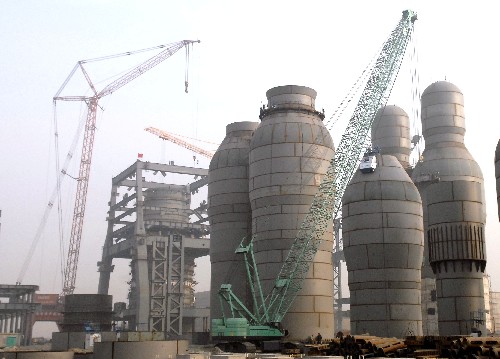 這是建設中的首鋼京唐鋼鐵廠(1月8日攝)