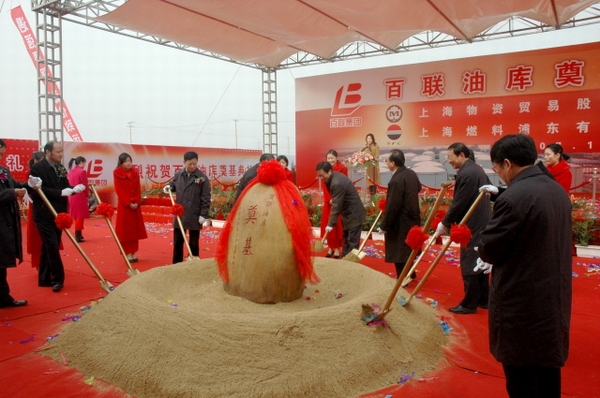 2007年12月29日,百聯油庫奠基典禮在上海化學工業區百聯油庫工地舉行。由百聯集團旗下的上海物資貿易股份有限公司全資子公司上海燃料浦東有限責任公司投資建設的百聯油庫,項目總投資5.2億元人民幣,面積212畝,儲罐設計容量為20萬立方米,其中擬建立3萬噸以柴油為主的成品油應急專項儲備,年周轉量達300-400萬立方米,預計2009年初建成并投入使用。油庫投產后,作為上海市地方成品油應急專項儲備基地之一。