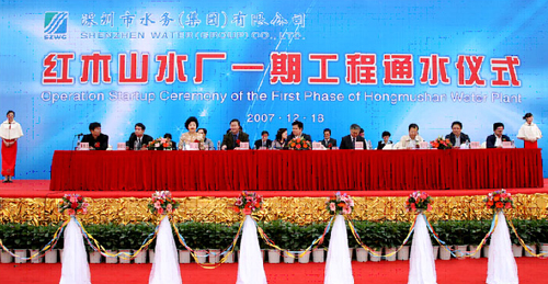 為解決深圳未來的龍華中心的供水緊張問題,2007年12月18日,由深圳市水務集團全額投資2億元興建的紅木山水廠一期工程正式竣工通水。深圳市委常委、副市長呂銳鋒,市政府副秘書長陳玉堂,市相關局委的負責同志出席了通水儀式。儀式由深圳市水務局局長蔣尊玉主持。