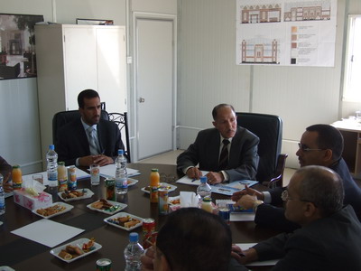 11月12日,也門眾議院議員、交通與通信委員會主席ABDUL-WASA HAYEL SAEED一行6人在民航局主席和項目有關人員的陪同下,來到北京城建集團公司承攬建設的薩那新機場航站樓施工工地,召開現場會議。
