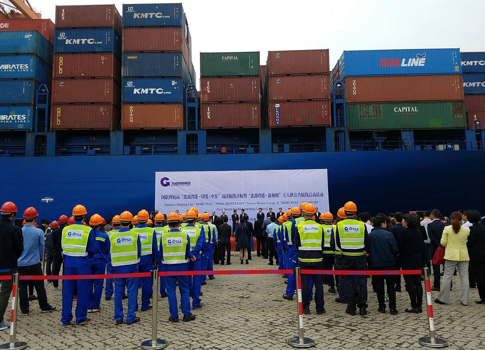 11月9日上午,阿聯酋航(hang)(hang)運(yun)“北(bei)部(bu)灣(wan)(wan)(wan)港(gang)-印度/中東”遠(yuan)洋(yang)(yang)航(hang)(hang)線首航(hang)(hang)暨“北(bei)部(bu)灣(wan)(wan)(wan)港(gang)-新加(jia)坡(po)”天(tian)(tian)天(tian)(tian)班公共航(hang)(hang)線啟動(dong)(dong)活動(dong)(dong)在欽州保稅港(gang)區4#泊位成(cheng)功(gong)舉行。這兩條航(hang)(hang)線的(de)正式啟動(dong)(dong),標(biao)志著(zhu)北(bei)部(bu)灣(wan)(wan)(wan)港(gang)至印度/中東遠(yuan)洋(yang)(yang)直航(hang)(hang)航(hang)(hang)線及(ji)至新加(jia)坡(po)天(tian)(tian)天(tian)(tian)班公共航(hang)(hang)線正式開通(tong),這是北(bei)部(bu)灣(wan)(wan)(wan)港(gang)集裝(zhuang)箱(xiang)遠(yuan)洋(yang)(yang)航(hang)(hang)線零的(de)突破,也是中新互(hu)聯互(hu)通(tong)南向通(tong)道有效(xiao)延伸(shen)及(ji)開拓國際中轉業務的(de)關(guan)鍵(jian)一步(bu)。