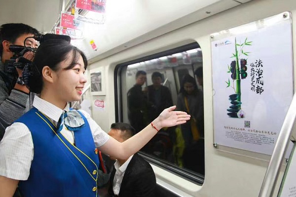 該主(zhu)題(ti)列車(che)是(shi)成(cheng)(cheng)(cheng)都軌道(dao)集團(tuan)創(chuang)建(jian)(jian)“法(fa)治(zhi)(zhi)文(wen)化陣地建(jian)(jian)設(she)”示范項目的(de)(de)亮(liang)點工(gong)程,以(yi)“踐行黨的(de)(de)十九大精神(shen),法(fa)治(zhi)(zhi)成(cheng)(cheng)(cheng)都讓(rang)生活(huo)更(geng)美好”為主(zhu)旨(zhi),用竹子(zi)、“福”字、大熊貓和(he)中國非物(wu)質(zhi)文(wen)化遺產(chan)—剪紙(zhi)為元(yuan)素,將(jiang)法(fa)治(zhi)(zhi)成(cheng)(cheng)(cheng)都建(jian)(jian)設(she)的(de)(de)核心內容在地鐵(tie)車(che)廂中進行濃縮提煉,多維(wei)(wei)度進行創(chuang)意訴求,生動詮釋(shi)“法(fa)治(zhi)(zhi)成(cheng)(cheng)(cheng)都”與(yu)市民生活(huo)的(de)(de)關系以(yi)及帶給(gei)市民的(de)(de)切身利益,倡導每個市民“尊(zun)法(fa)、學法(fa)、守法(fa)、用法(fa)”,共同維(wei)(wei)護良好的(de)(de)法(fa)治(zhi)(zhi)文(wen)化氛圍,成(cheng)(cheng)(cheng)為傳播法(fa)治(zhi)(zhi)文(wen)化和(he)法(fa)治(zhi)(zhi)精神(shen)的(de)(de)一道(dao)移(yi)動風景線。