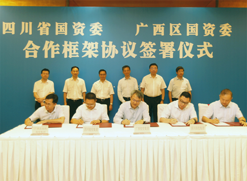 近日,為(wei)進一步加強川(chuan)桂(gui)(gui)兩(liang)省(sheng)區交流(liu)合(he)作,充分(fen)發揮和利用川(chuan)桂(gui)(gui)兩(liang)省(sheng)(自治區)國有(you)企業各自優勢,四川(chuan)省(sheng)國資委與(yu)廣西壯族(zu)自治區人民政府(fu)國資委在成都簽署戰(zhan)略合(he)作框(kuang)架協議。