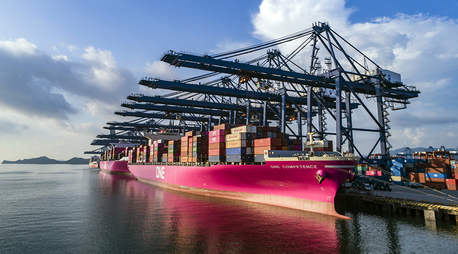 7月31日,鹽(yan)田港(gang)區迎(ying)來了日本(ben)海洋網聯船(chuan)務“ONE MINATO(第(di)一(yi)海港(gang))”號(hao)首次掛靠。“第(di)一(yi)海港(gang)”號(hao)長366米,寬51.2米,屬于日本(ben)海洋網聯船(chuan)務訂造的(de)系列14000標(biao)箱集裝箱船(chuan)。紫紅色的(de)“第(di)一(yi)海港(gang)”號(hao)投入(ru)使用(yong)后,將成(cheng)為其核心船(chuan)舶之一(yi)。