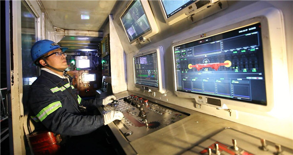 井(jing)下,400多米深處的(de)采煤設(she)備自動運轉,支架移(yi)動,采煤機割煤放煤、皮帶(dai)傳送井(jing)然有序。田向東說:“這是我們集團公司第(di)一個智(zhi)能化工作(zuo)面,也是全(quan)國第(di)一套在我們這個特厚煤層(ceng)條件(jian)下應(ying)用的(de)智(zhi)能化裝備。”