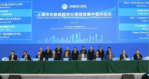 11月7日上(shang)午(wu),首屆中(zhong)國(guo)國(guo)際進(jin)口博覽會上(shang)海市交易(yi)團(tuan)國(guo)資分團(tuan)舉行集中(zhong)簽約。此次進(jin)口博覽會上(shang),45家上(shang)海市屬企業(ye)集團(tuan)組(zu)建上(shang)海市交易(yi)團(tuan)國(guo)資分團(tuan),采購商(shang)企業(ye)累計3500多(duo)家,采購人員超過3萬(wan)人,在智能高(gao)端裝備、醫療醫藥保健、汽(qi)車零部(bu)件、食(shi)品農產品、服務貿易(yi)等領(ling)域將達成(cheng)100余項交易(yi)協議。