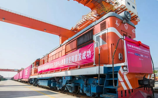 近日,滿載著(zhu)54個(ge)粉色集裝箱的日本海(hai)洋網聯船務(ONE)義烏海(hai)鐵專(zhuan)列(lie)從義烏西站首發,駛(shi)往寧波(bo)舟(zhou)山港。這(zhe)是寧波(bo)舟(zhou)山港自開通馬士基航運(yun)、中遠海(hai)運(yun)等船公司義烏專(zhuan)列(lie)后,開通的第六條船公司海(hai)鐵聯運(yun)專(zhuan)列(lie)。