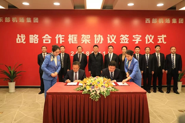 兩大(da)機(ji)(ji)場(chang)(chang)集(ji)團(tuan)戰略合作(zuo)協議的(de)簽(qian)署(shu),標志(zhi)著東部、西部地(di)區民航(hang)合作(zuo)翻(fan)開(kai)了(le)新的(de)篇章。雙(shuang)方將本著“資源共(gong)享、優(you)勢(shi)互補(bu)、互利共(gong)贏”的(de)原則,全方位、多層次推進協同(tong)發展。重點(dian)在優(you)化航(hang)線(xian)(xian)布局(ju),力(li)爭開(kai)通一(yi)(yi)批通達“一(yi)(yi)帶一(yi)(yi)路”沿線(xian)(xian)國(guo)家、拉動效(xiao)應明顯、運行(xing)品(pin)質(zhi)高、國(guo)際競爭力(li)和影(ying)響(xiang)力(li)強(qiang)的(de)新航(hang)線(xian)(xian),滿足兩省人民群(qun)眾對(dui)航(hang)空出行(xing)的(de)美(mei)好需求;強(qiang)化管理基礎,促(cu)進雙(shuang)方管理人員業務技能(neng)的(de)共(gong)同(tong)提(ti)升(sheng)。同(tong)時,雙(shuang)方將以推進人才互培互訓、信息(xi)技術共(gong)建共(gong)享等(deng)方面為突破點(dian),在提(ti)高機(ji)(ji)場(chang)(chang)安全運行(xing)保障效(xiao)能(neng),提(ti)升(sheng)航(hang)空運輸(shu)服(fu)務品(pin)質(zhi)方面,共(gong)同(tong)研究(jiu)、破解發展難題(ti),積極創建平安機(ji)(ji)場(chang)(chang)、綠色機(ji)(ji)場(chang)(chang)、智慧(hui)機(ji)(ji)場(chang)(chang)、人文機(ji)(ji)場(chang)(chang)。