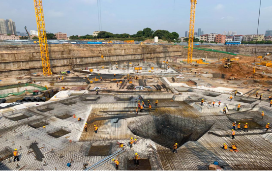 持續深化改革,國有企業基層活力不斷激發,效率穩步提升。圖為疫情期間,中建二局二公司東關珺府項目在搶趕工期。