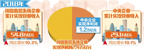 2018年,國(guo)企堅(jian)持穩中(zhong)求進,頂住經濟下行壓力,實現整體(ti)效益大(da)幅增(zeng)(zeng)(zeng)長(chang)。數(shu)據顯示,2018年,國(guo)資監管系統企業(ye)累計實現營(ying)業(ye)收入(ru)54.8萬億(yi)元(yuan),同比增(zeng)(zeng)(zeng)長(chang)10.3%;實現利潤(run)總額3.4萬億(yi)元(yuan),同比增(zeng)(zeng)(zeng)長(chang)13.2%;實現凈利潤(run)2.4萬億(yi)元(yuan),同比增(zeng)(zeng)(zeng)長(chang)12.1%。