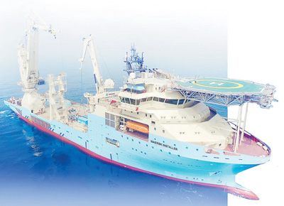 圖為中遠海運重工旗下大連中遠船務建造的系列超深水海工作業船首制船“馬士基安裝者”。(資料照片)