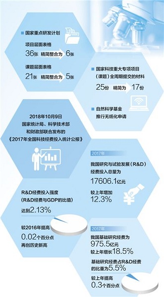以科研人員詬病較多的(de)“報(bao)表”為例,經過(guo)一(yi)系列(lie)改革措施,基本完成了各類(lei)報(bao)表的(de)整(zheng)合精(jing)簡、減少了信息填(tian)報(bao)和材(cai)料報(bao)送。國(guo)(guo)家(jia)重點研發計劃項(xiang)目層(ceng)(ceng)面(mian)的(de)36張(zhang)表格精(jing)簡整(zheng)合為6張(zhang),課(ke)題層(ceng)(ceng)面(mian)的(de)21張(zhang)表格精(jing)簡整(zheng)合為5張(zhang);國(guo)(guo)家(jia)科技重大專項(xiang)項(xiang)目(課(ke)題)全周期(qi)提交(jiao)的(de)材(cai)料由25份(fen)精(jing)簡為17份(fen);自然(ran)科學基金推行無紙化申請。