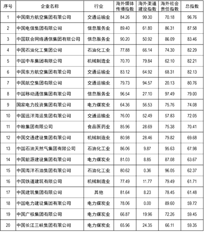 中央(yang)企業海外(wai)形象(xiang)傳播指數排行榜: