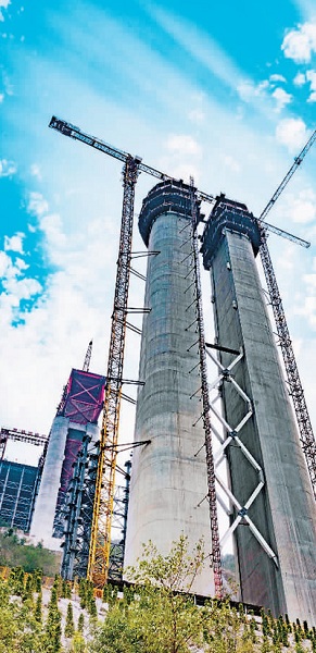 由中國企業承建的中老國際通道國內段——玉磨鐵路元江特大橋一角。(史家民攝)