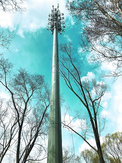 中國鐵塔在世園會建設的共享通信塔,承載5G通信、政務專網、園區內景觀照明等設備服務,最大化實現一塔多用。(中國鐵塔供圖)